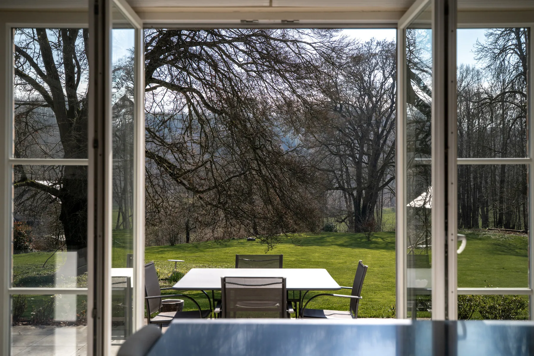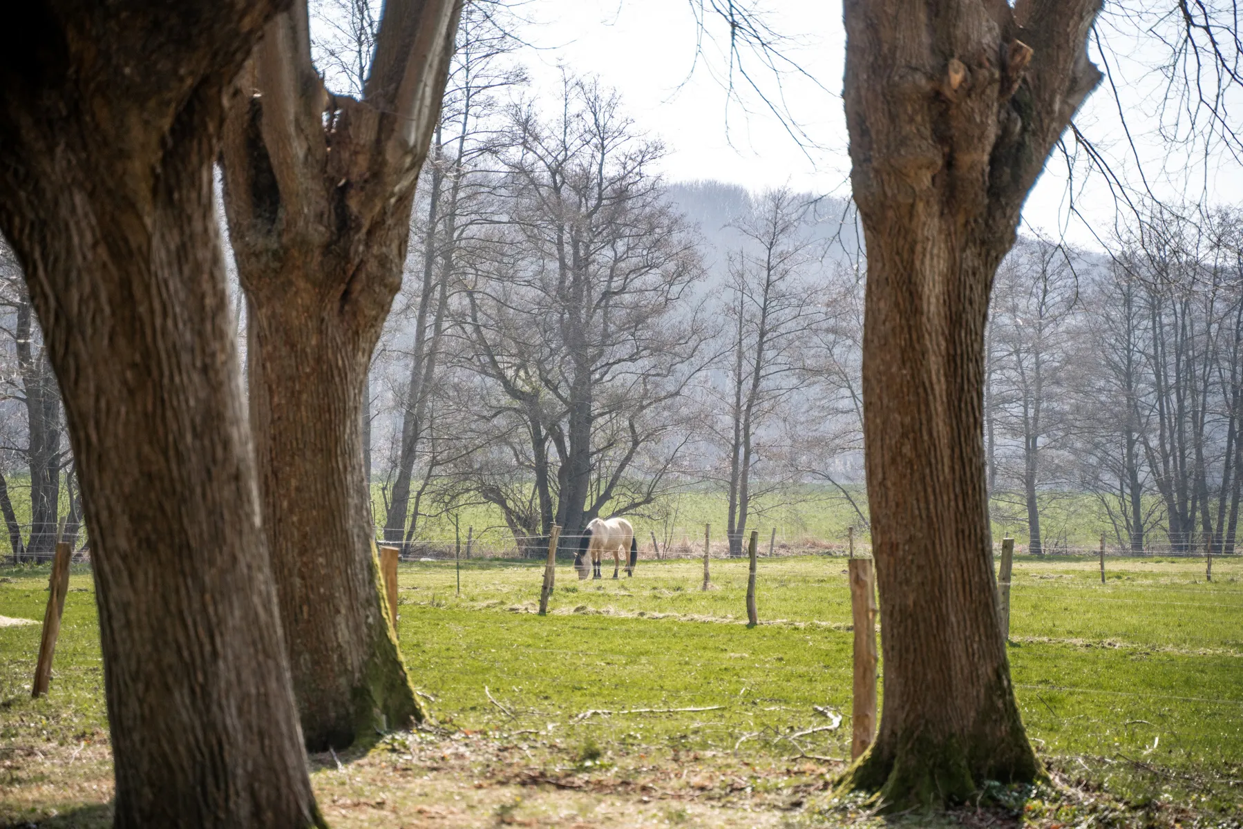 Atout rare : la prairie adjacente et le terrain à bâtir en bord de route peuvent être acquis pour préserver durablement le calme et l’environnement du bien.